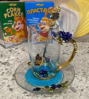 • Material: Glass (Cup), Stainless Steel (Spoon)