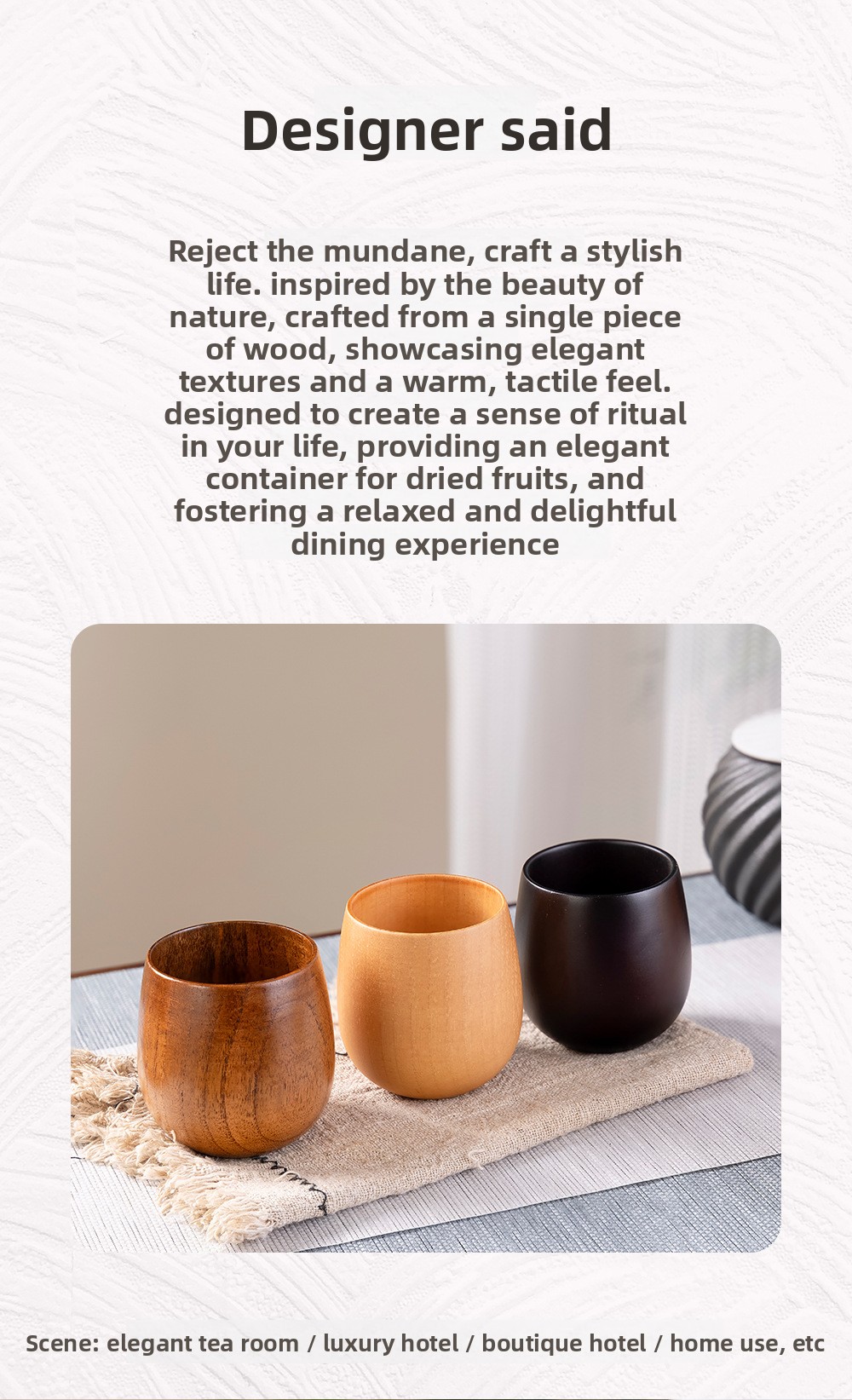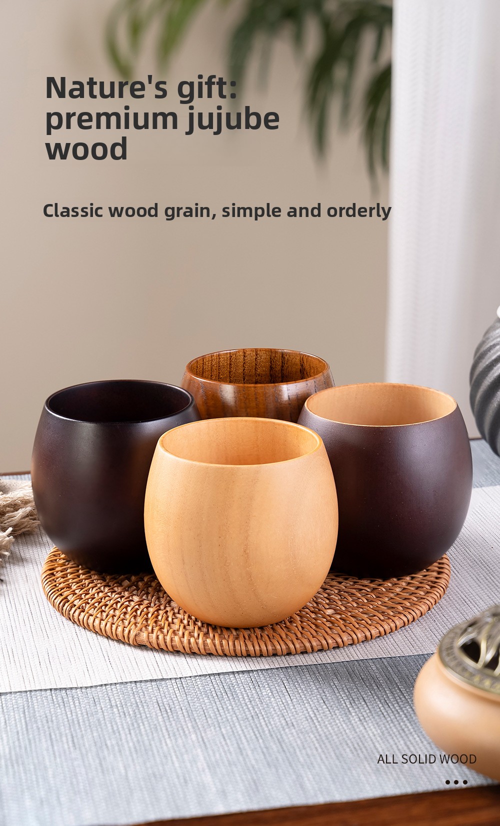 • Unique Wood Grain: No two cups are alike. Each piece tells its own story with distinct natural patterns and a smooth, handcrafted finish.