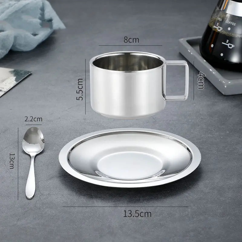 Product information: Material: 304 stainless steel Style: Chinese Color: natural color suit, gold suit, rose gold suit Pattern: solid color Capacity: 200ML coffee cup, 280ML coffee cup Size: 14x14x6cm/14x14x8.5cm Packing list: Cup+plate+spoon X1PCS